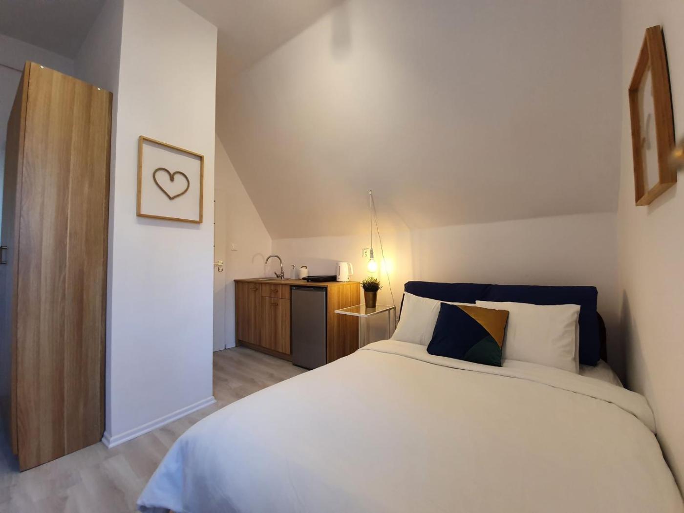 Studio. The studio provides parquet floors and heating, as well as a private bathroom boasting a shower. In the fully equipped kitchenette, guests will find a stovetop, a refrigerator, kitchenware and an electric kettle. The studio features a washing machine, a dining area, a wardrobe, a flat-screen TV, as well as city views. The unit has 1 bed. Studio - 2 osobowy. Powierzchnia pokoju ok.: 20 mkw.