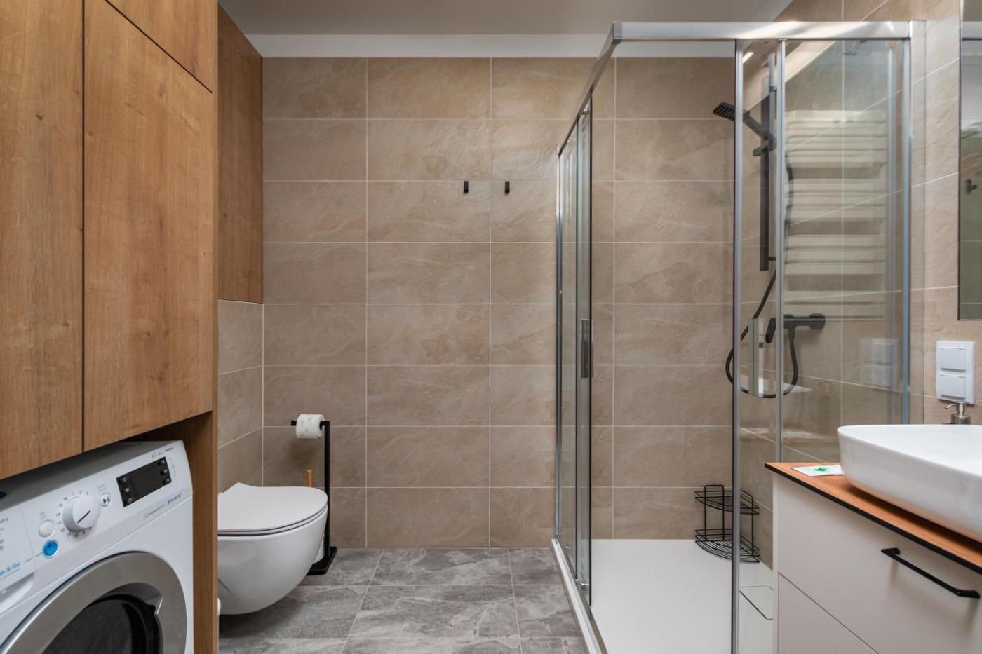 Studio. In the kitchen, guests will find a stovetop, a refrigerator, a dishwasher and kitchenware. The studio offers a washing machine, a coffee machine, as well as a private bathroom boasting a shower and a hairdryer. The unit has 1 bed. Studio - 2 osobowy. Powierzchnia pokoju ok.: 38 mkw.